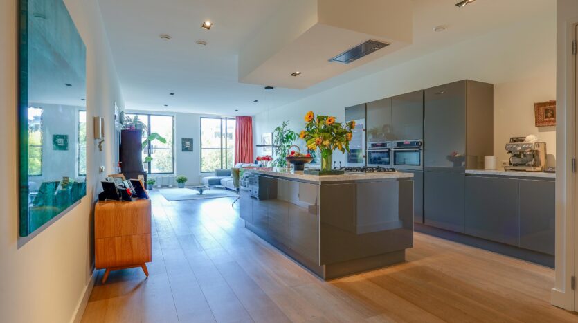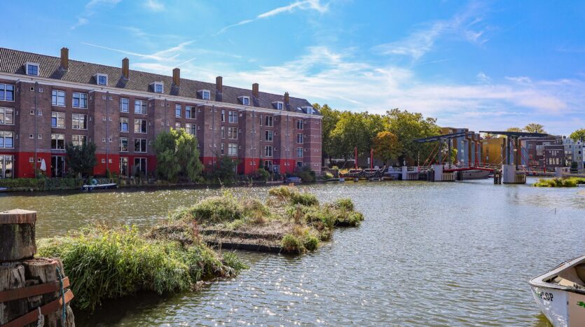 This unique property is located in the tranquil Het Groenland apartment complex on Wittenburg Island, part of Amsterdam’s Eastern Islands. The area offers a peaceful, low-traffic environment right in the heart of the city, surrounded by the picturesque waters of the Wittenburgervaart.