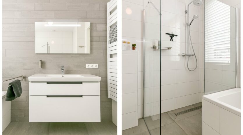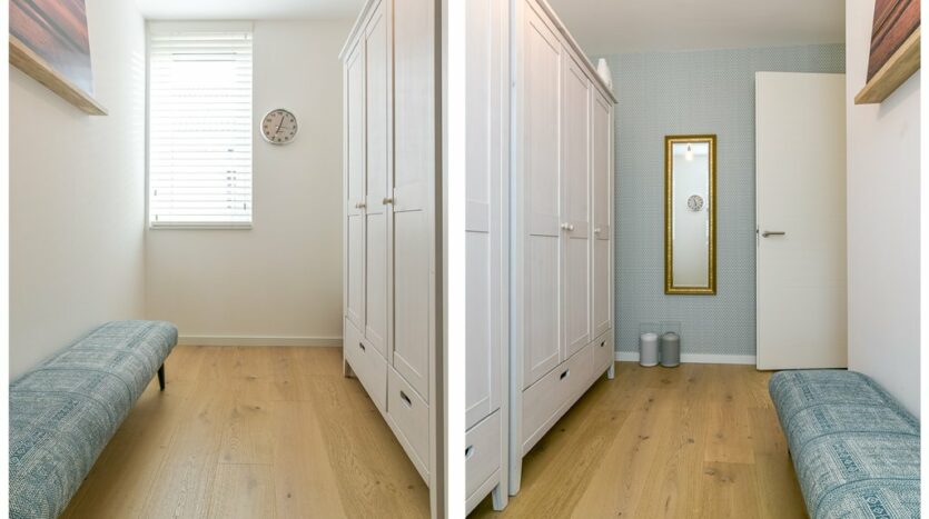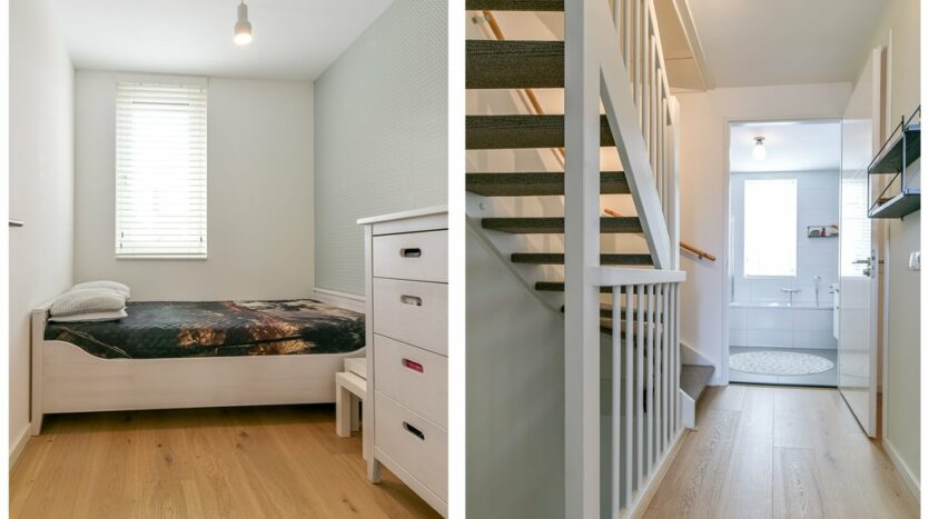 1e etage: ruime overloop, slaapkamer voorzijde, prachtige luxe badkamer met ruim ligbad, inloopdouche, easydrain, regendouche, 2e toilet, wastafelmeubel en een designradiator. Aan de achterzijde bevinden zich twee slaapkamers waarvan de ruimste voorzien is van een luxe inbouwkast. De eerste etage is volledig voorzien van een eikenhouten vloer en vloerverwarming.