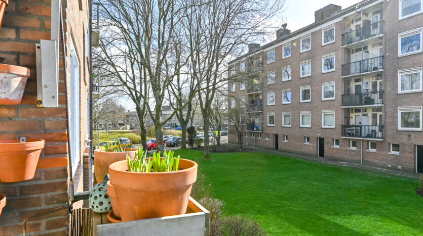 Een comfortabel 3-kamerappartement met liefde en smaak ingericht op de 1e verdieping. Een lichte doorzonwoonkamer, twee ruime slaapkamers met in het midden de badkamer. De woning heeft twee balkons waardoor u op elk moment van de dag van de zon kunt genieten! Het balkon op het zuidwesten grenst aan de woonkamer en is een heerlijk plek om te zitten in de middag en avond . Aan de achterzijde bevindt zich het tweede balkon, de perfecte plek voor koffie in de ochtendzon. Het appartement is zorgvuldig onderhouden, afgelopen zijn jaren zijn de kozijnen vernieuwd. Daarnaast beschikt de woning over een ruim privé berging op de begane grond.