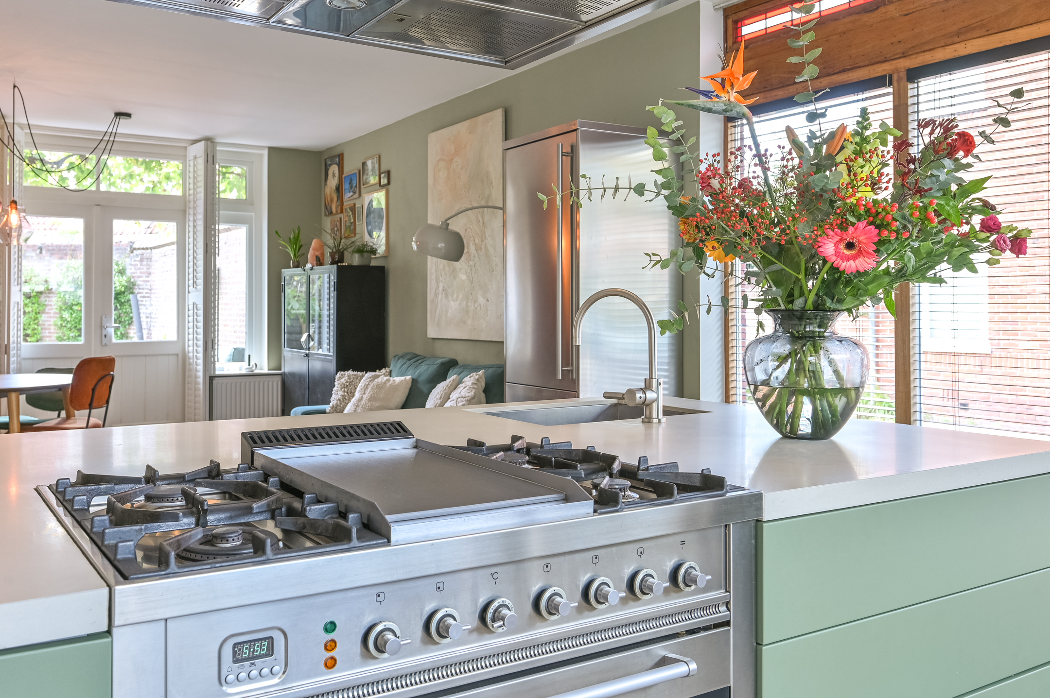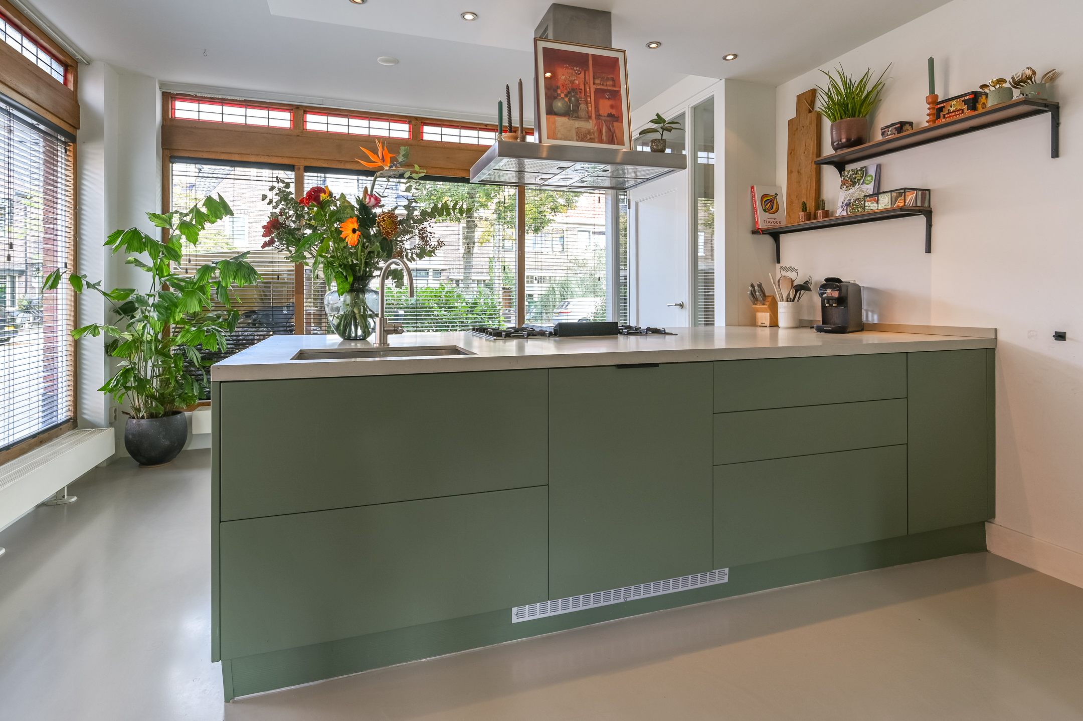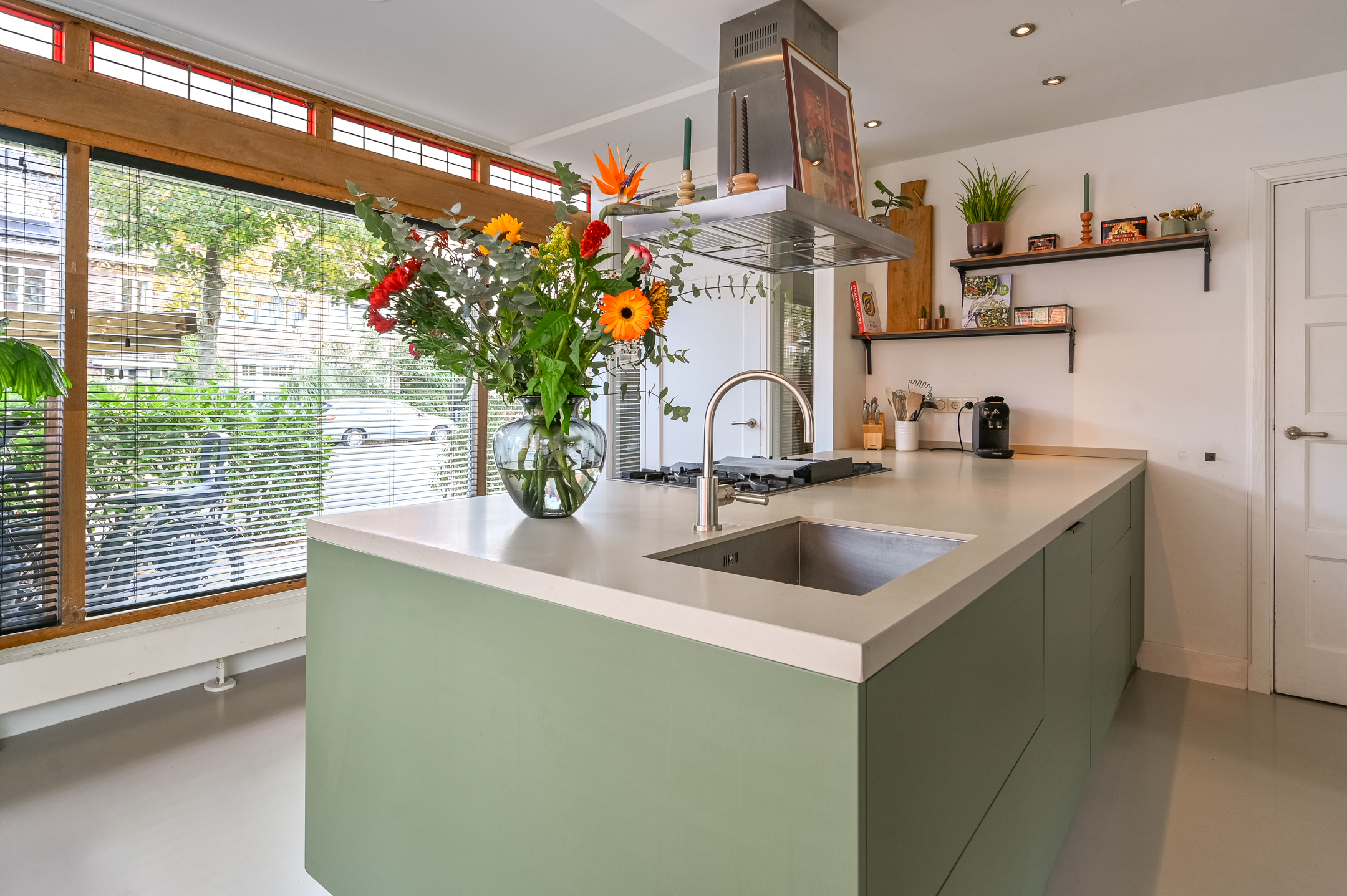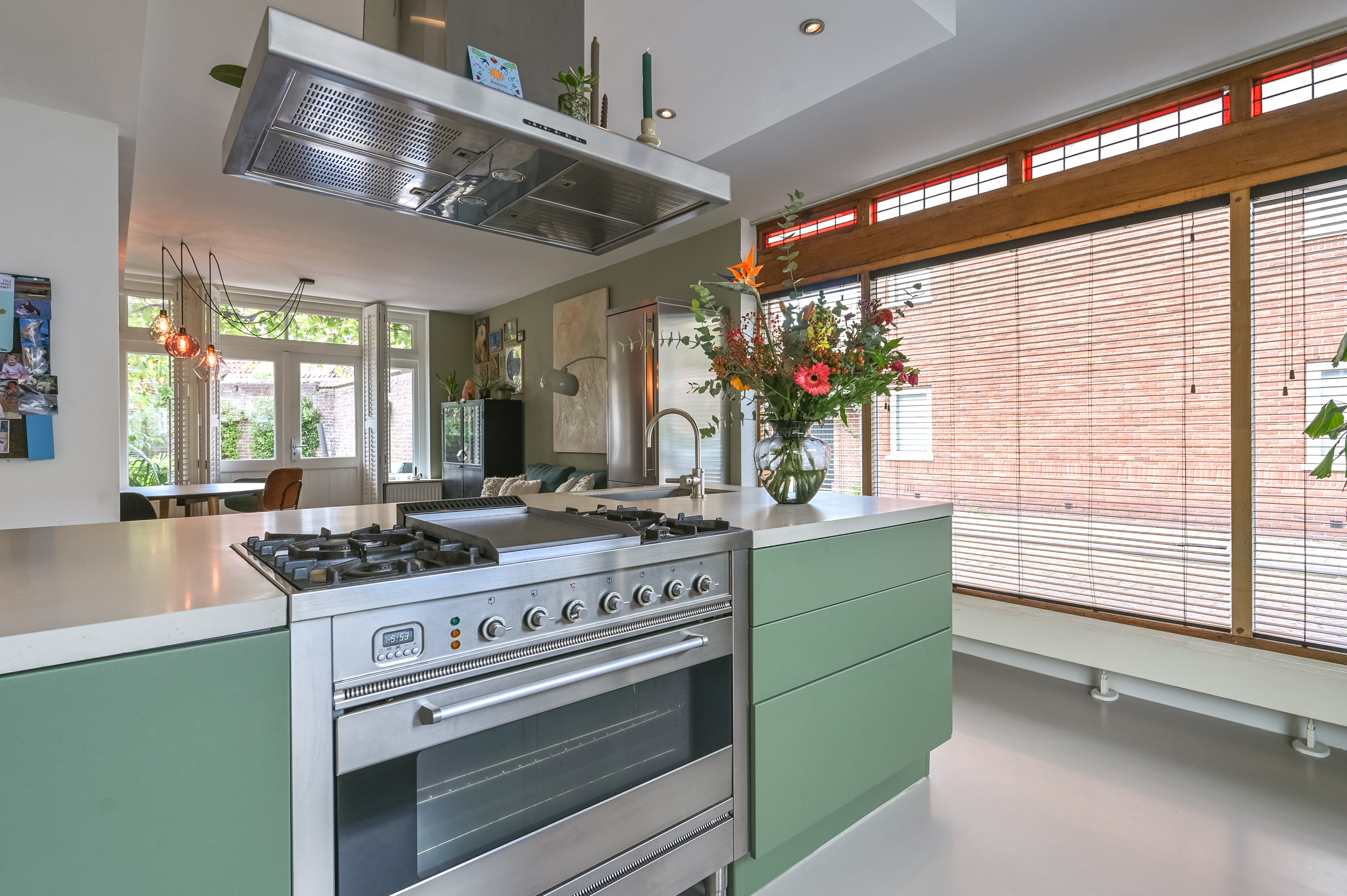 De benedenverdieping van dit voormalige winkelpand is ingericht tot een royale leefkeuken, met een groot kook(schier)eiland als kloppend hart. Dit is de perfecte plek voor kookliefhebbers en iedereen die graag vrienden en familie uitnodigen voor gezellige avonden. Door de talrijke ramen is de ruimte zeer licht en de openslaande deuren geven direct toegang tot de tuin als verlengstuk van de ruimte. De sfeervolle woonkamer op de eerste etage, biedt veel privacy en is een heerlijke plek om tot rust te komen en ontspannen. Kortom, een volledig instapklaar droomhuis met karakter!
