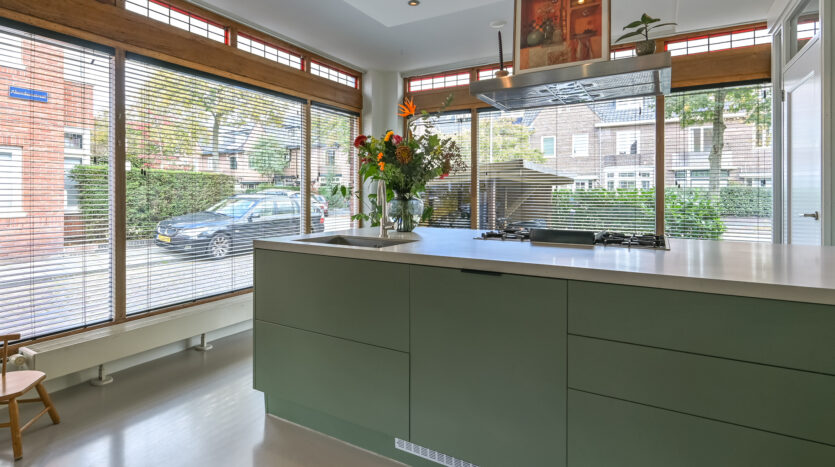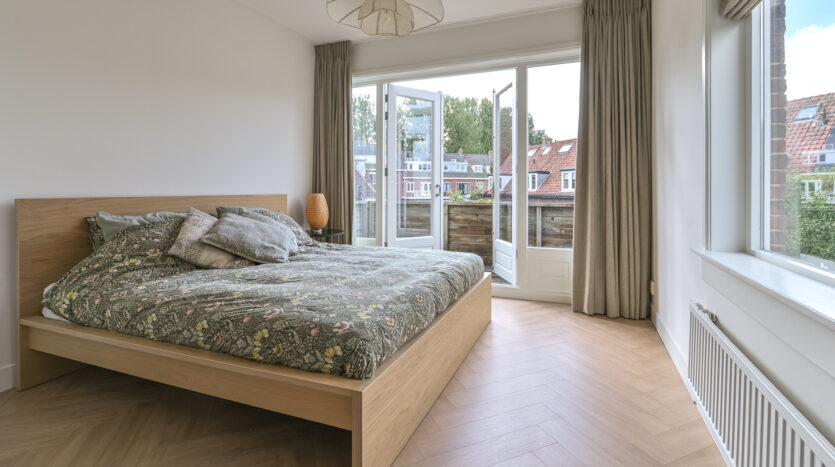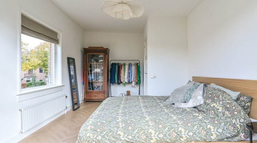 LOCATION: The Bomenbuurt neighborhood is known as one of Haarlem’s greenest areas, with several parks, wide avenues, and a wide variety of housing types. The neighborhood borders Kleverpark, home to a wide range of specialty shops, and the city center and train station are just a short bike ride away. The beach and sea are approximately a 30-minute bike ride away, and the dunes begin just 3 km away. Plenty of amenities are available in the immediate vicinity: a local supermarket, playgrounds, sports fields, an ice skating rink, a windmill, and the Stadskweektuin (City Nursery) are all within walking distance.