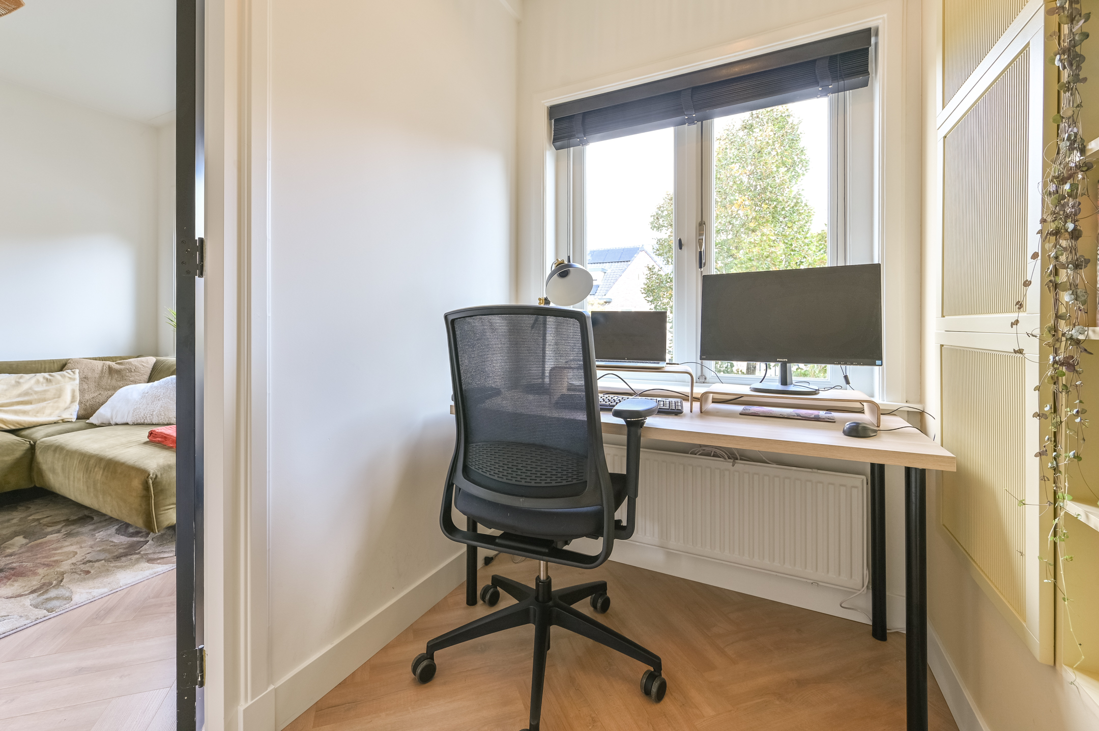 Stunning 1930s Corner Family Home! with four bedrooms and a separate study/home office, has been stylishly modernised and enjoys abundant natural light. The property stands out thanks to its special layout and its ideal south-west facing garden with rear access. The location is perfect for families: children can play outside in the greenery of the Schoterveenpolder, and there are several playgrounds, schools and sports facilities just a short distance away.