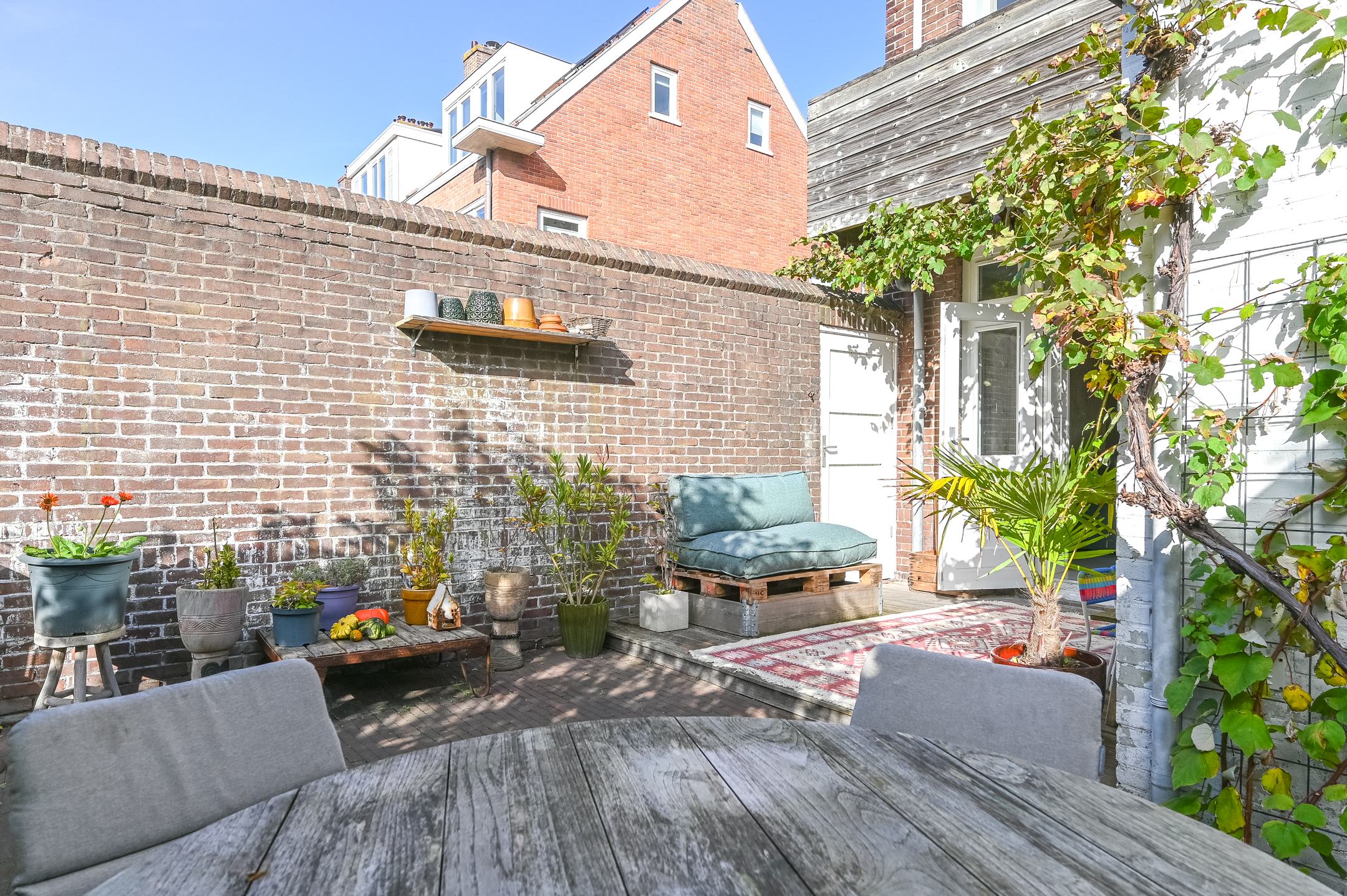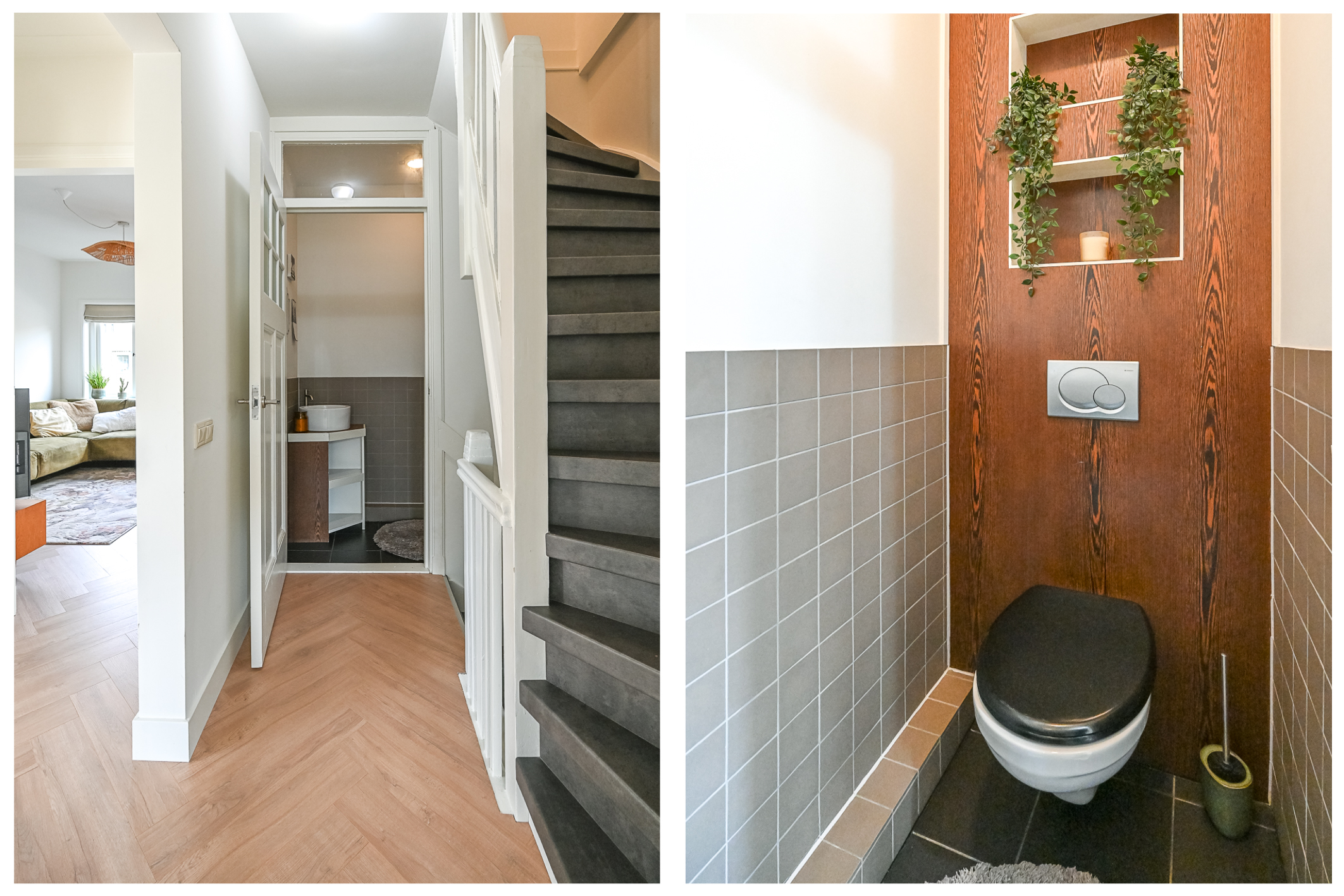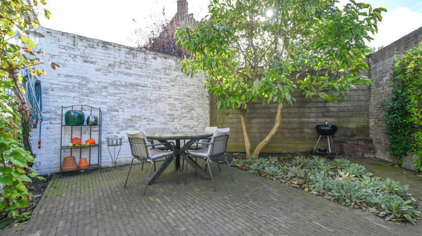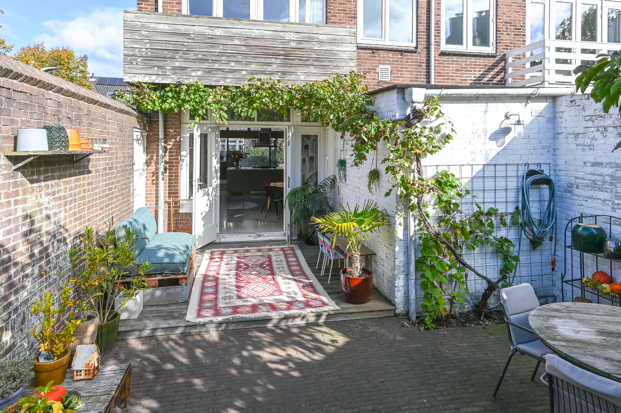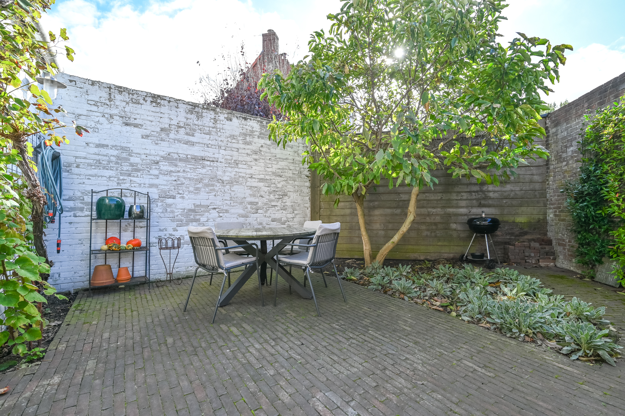 LAYOUT Ground floor: Access through the front garden with bicycle storage leads to the entrance/hall with the meter cupboard and toilet with a small sink. Spacious kitchen/diner with a large cooking island equipped with a Boretti gas stove, dishwasher, and extractor hood. Under the stairs is a practical storage cupboard, and there is a separate room with connections for a washing machine and dryer. The utility room/shed is fully insulated and could potentially be added later. French doors lead to the charming west/southwest-facing city garden, offering plenty of privacy and a rear entrance.