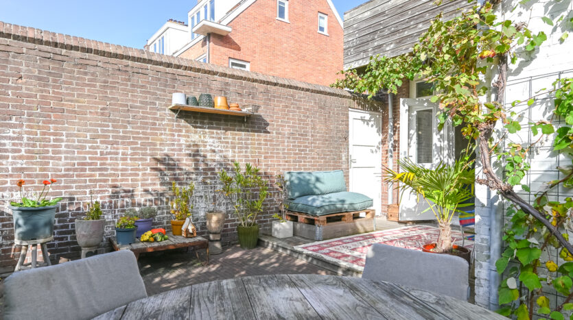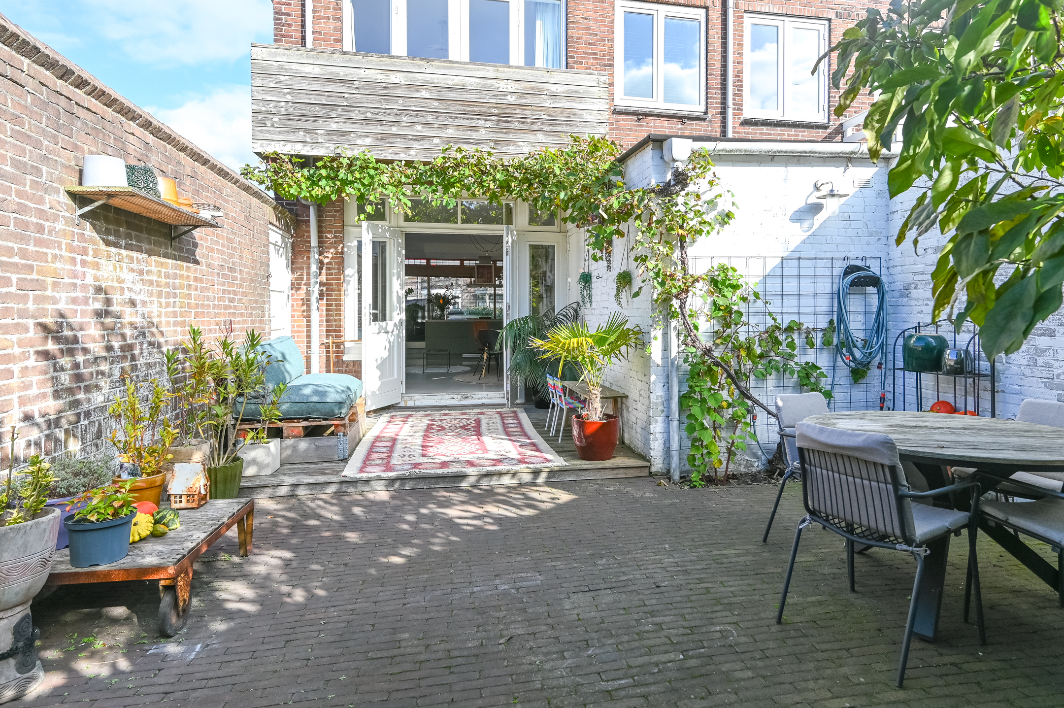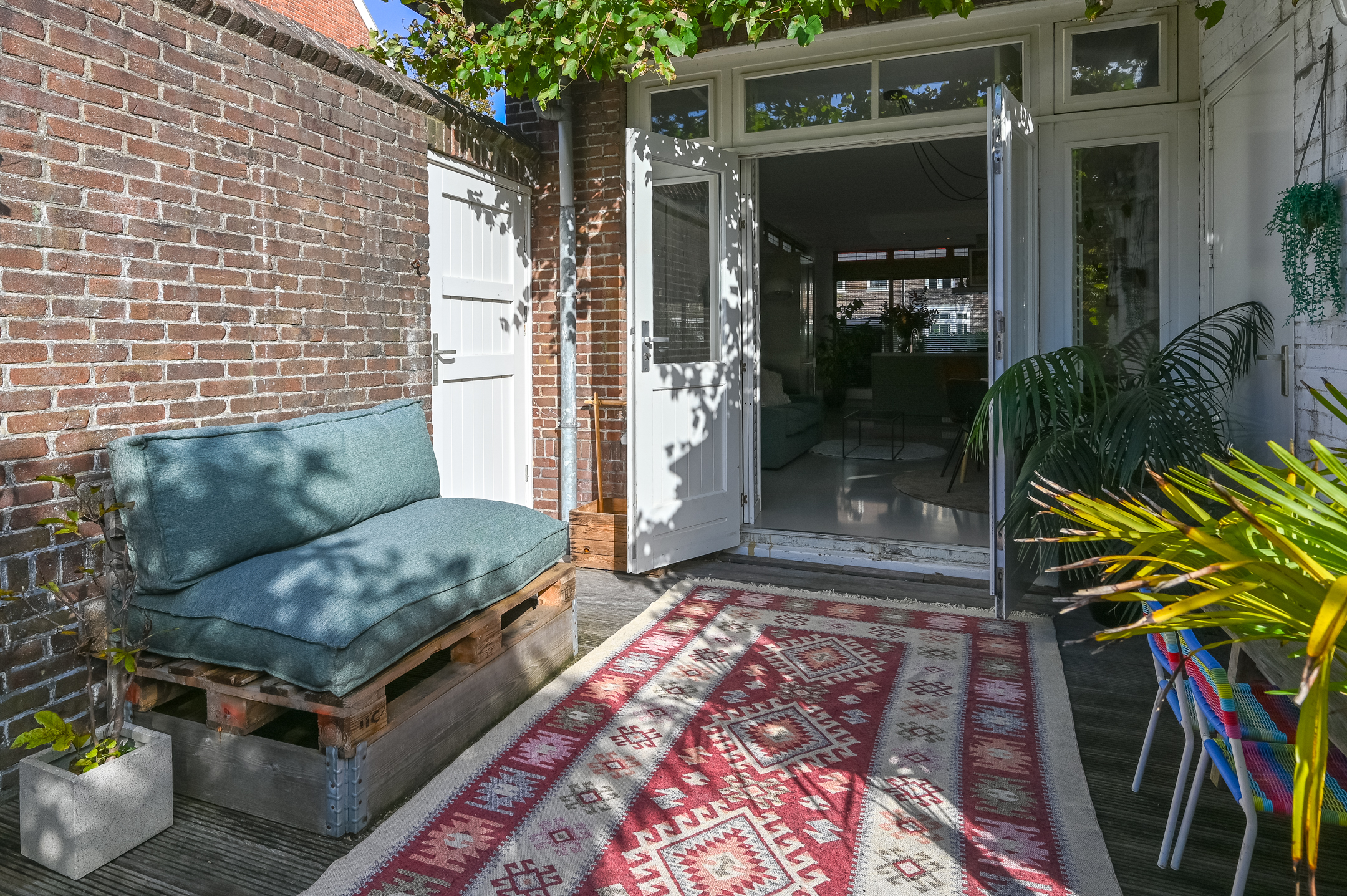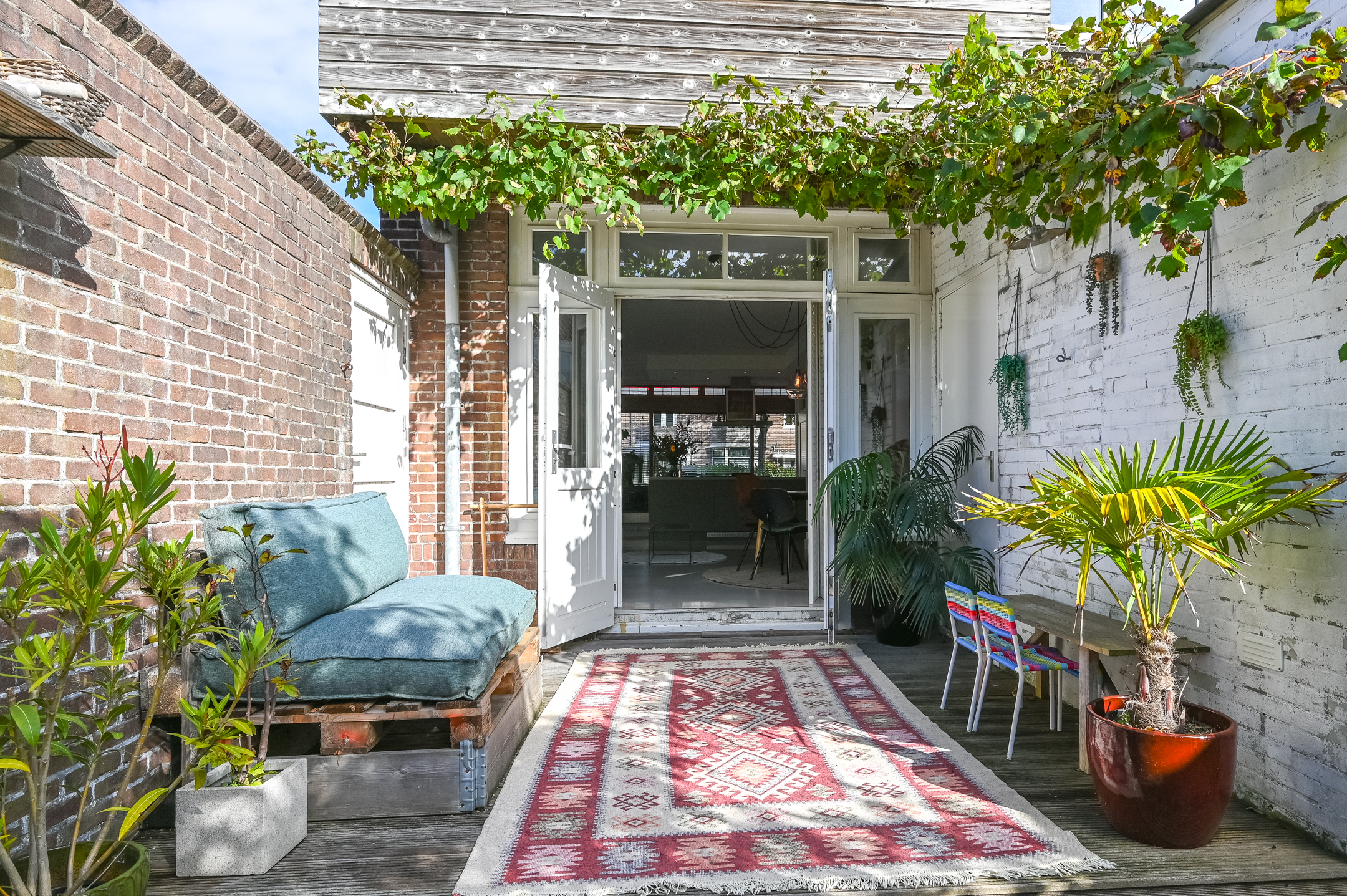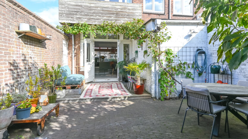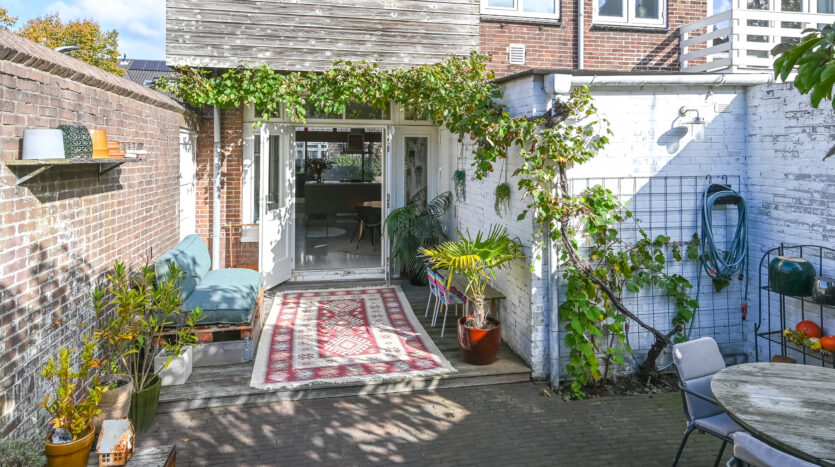 LAYOUT Ground floor: Access through the front garden with bicycle storage leads to the entrance/hall with the meter cupboard and toilet with a small sink. Spacious kitchen/diner with a large cooking island equipped with a Boretti gas stove, dishwasher, and extractor hood. Under the stairs is a practical storage cupboard, and there is a separate room with connections for a washing machine and dryer. The utility room/shed is fully insulated and could potentially be added later. French doors lead to the charming west/southwest-facing city garden, offering plenty of privacy and a rear entrance.