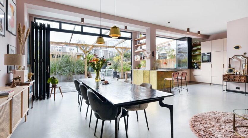 Uniek, half vrijstaand herenhuis (1925) met voor- en achtertuin. In 2018 volledig en luxe verbouwd. Speelse indeling met bijzonder fraaie inrichting in prachtige eclectische stijl. Geweldige woonkeuken, riante woonkamer met een geheel open te schuiven achterzijde. Mooi aangelegde, zeer ruime (ca. 18m diep en 10m breed) en sfeervolle zonnige achtertuin (zuid) met achterom. Met 5 slaapkamers en 2 badkamers is het bij uitstek geschikt voor een groot gezin en/of een inwonende au pair.